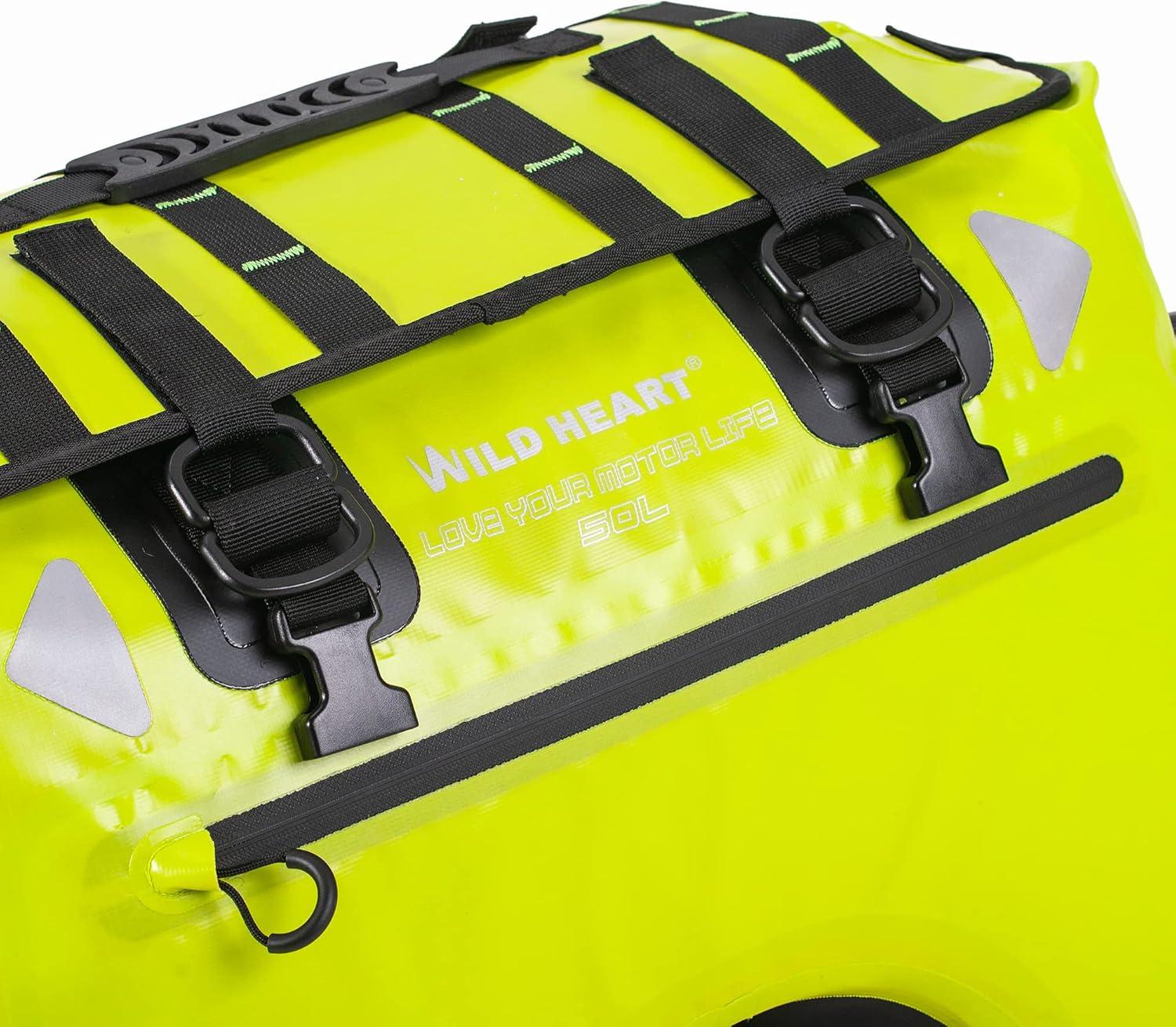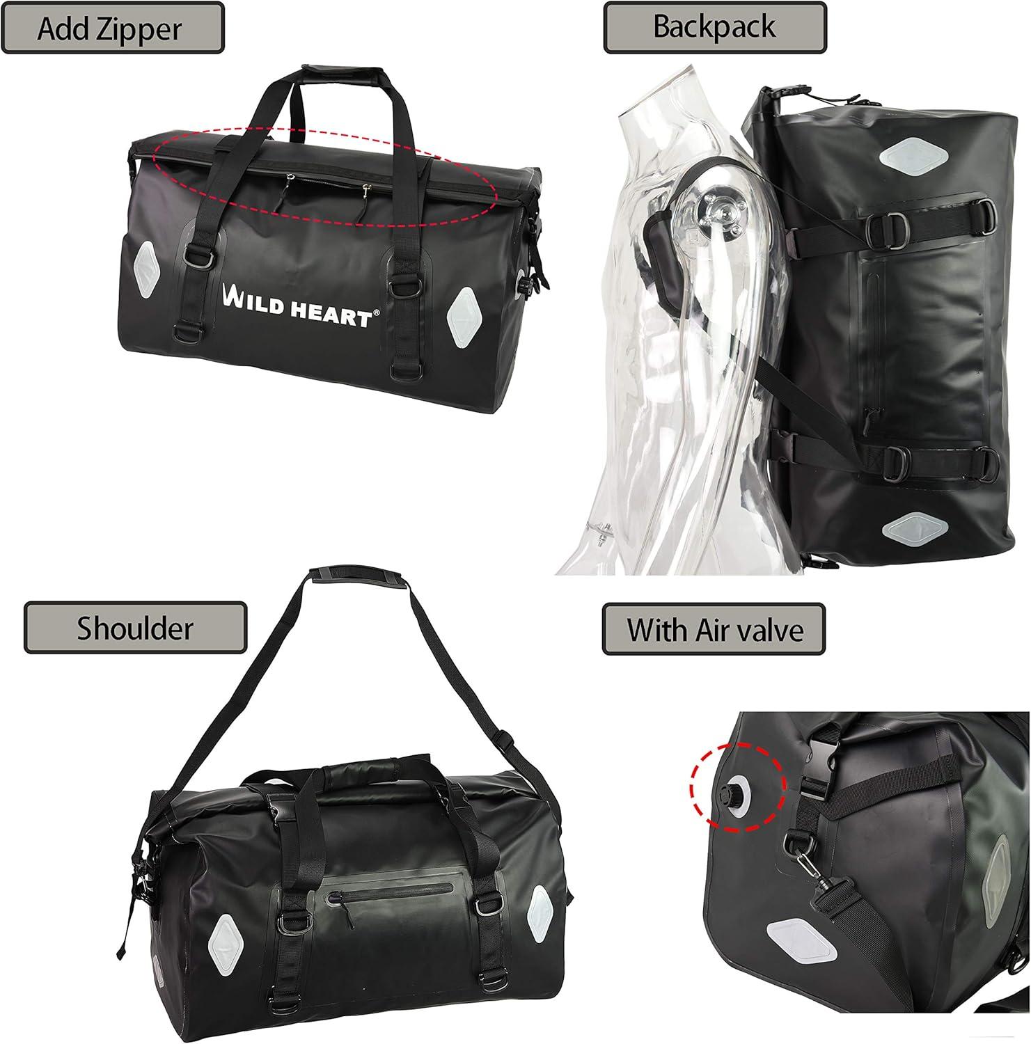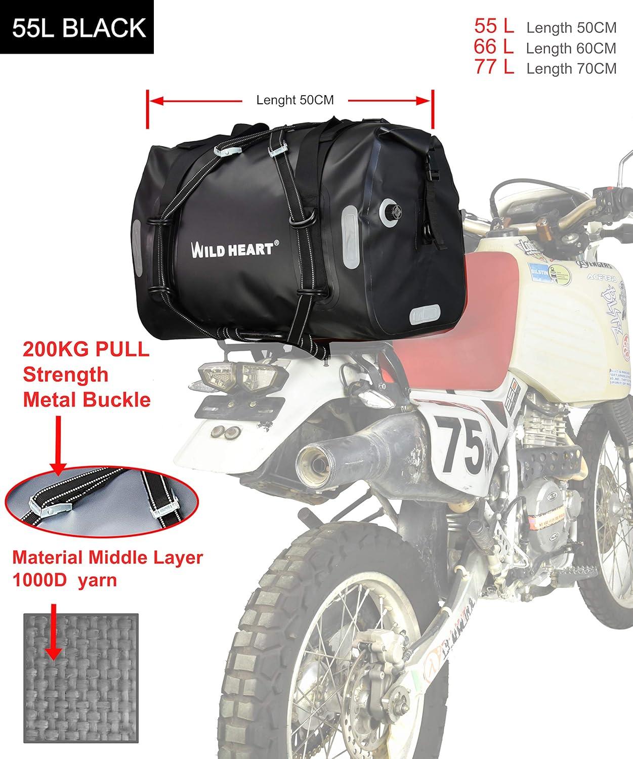 WILD HEART Dry Motorcycle Tail bag 70L/50L With Rope Straps and Inner Pocket Waterproof PVC 500D for Travel,Motorcycle and so on(Black TPU)