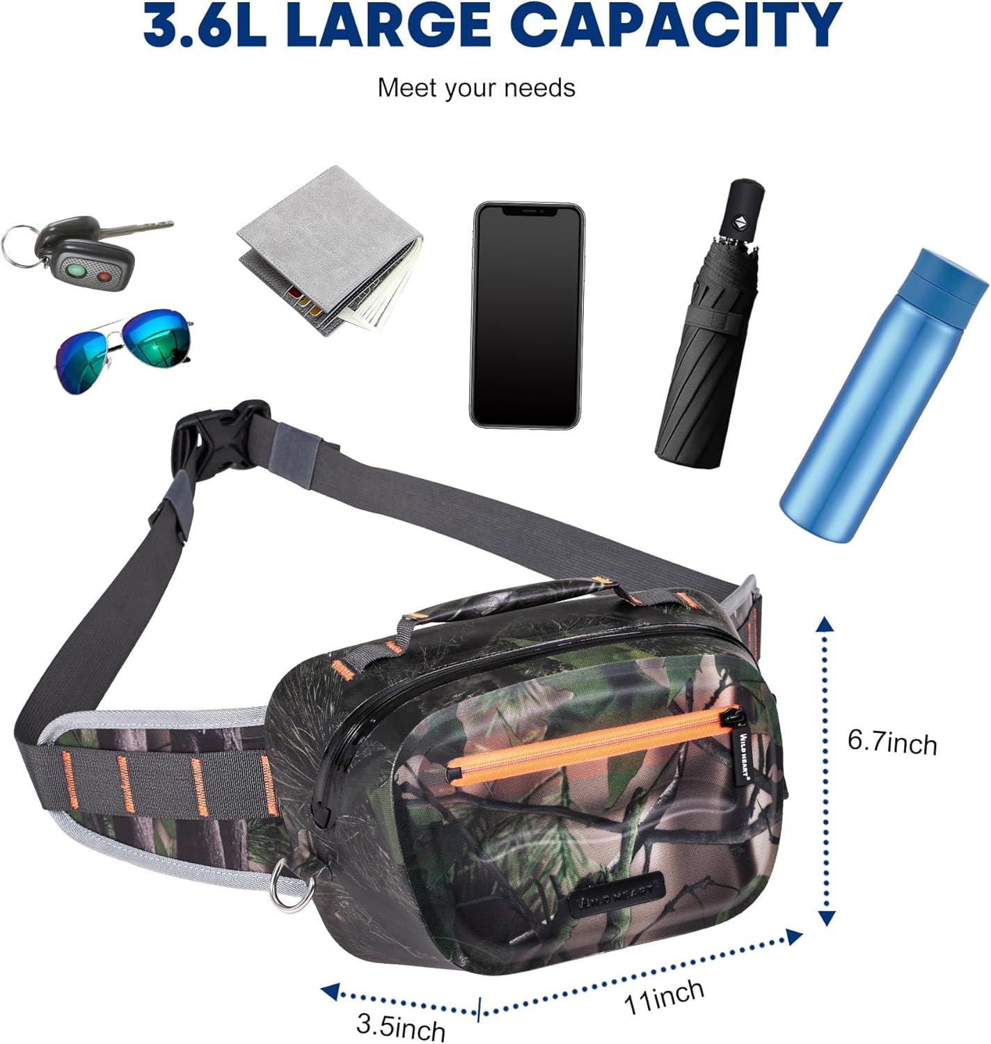 WILD HEART Airtight Waterproof Waist Bag Luya Bag 3D Dimension Shape Case 3.6L TPU Material for Outdoor Kayaking, Rafting, Boating, Swimming, Camping, Hiking, Beach, Fishing (Grey)(Army Green)